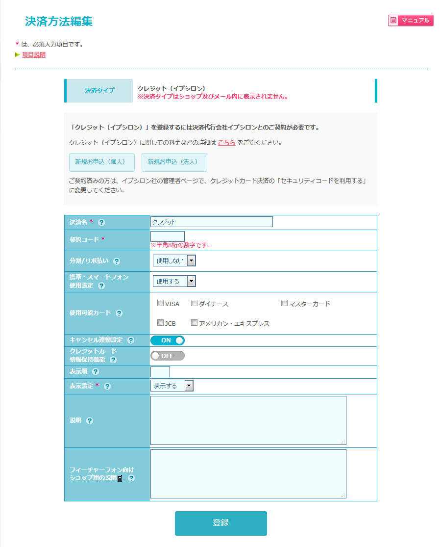 「ON」にすると会員登録済みの購入者がクレジットカード決済(イプシロン)を使用した場合、カラーミーショップがクレジットカード情報を保管します。