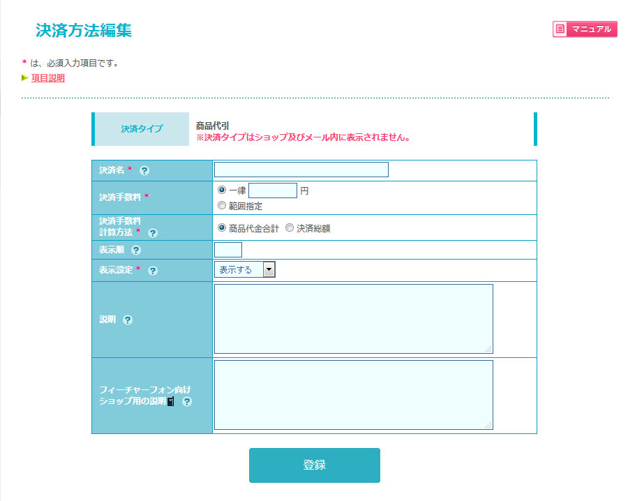 ショップ作成 > 決済 – 決済方法設定